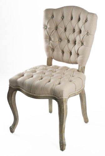 A traditional and luxurious side chair recalling a bygone era of style and sophistication, this antique piece brings opulence and formality to any dining experience. The tufted and gathered upholstery of 100% hemp gives authenticity to this French style chair. Read more...
