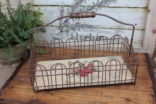 There are so many uses for this beautiful wire basket. It features a gorgeous vintage print and looks weathered with age. Use it for plants, candles or a tabletop tray. 13 3/4 inches in length, 7 inches wide and 9 3/4 inches in height at handles. Read more...